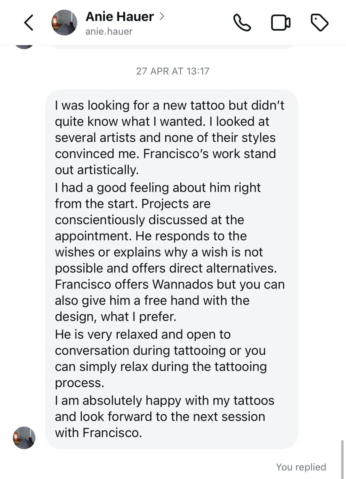 A consultation varies depending on your previous experience. We will be happy to answer all your questions and prepare you for your tattoo session in the best possible way.